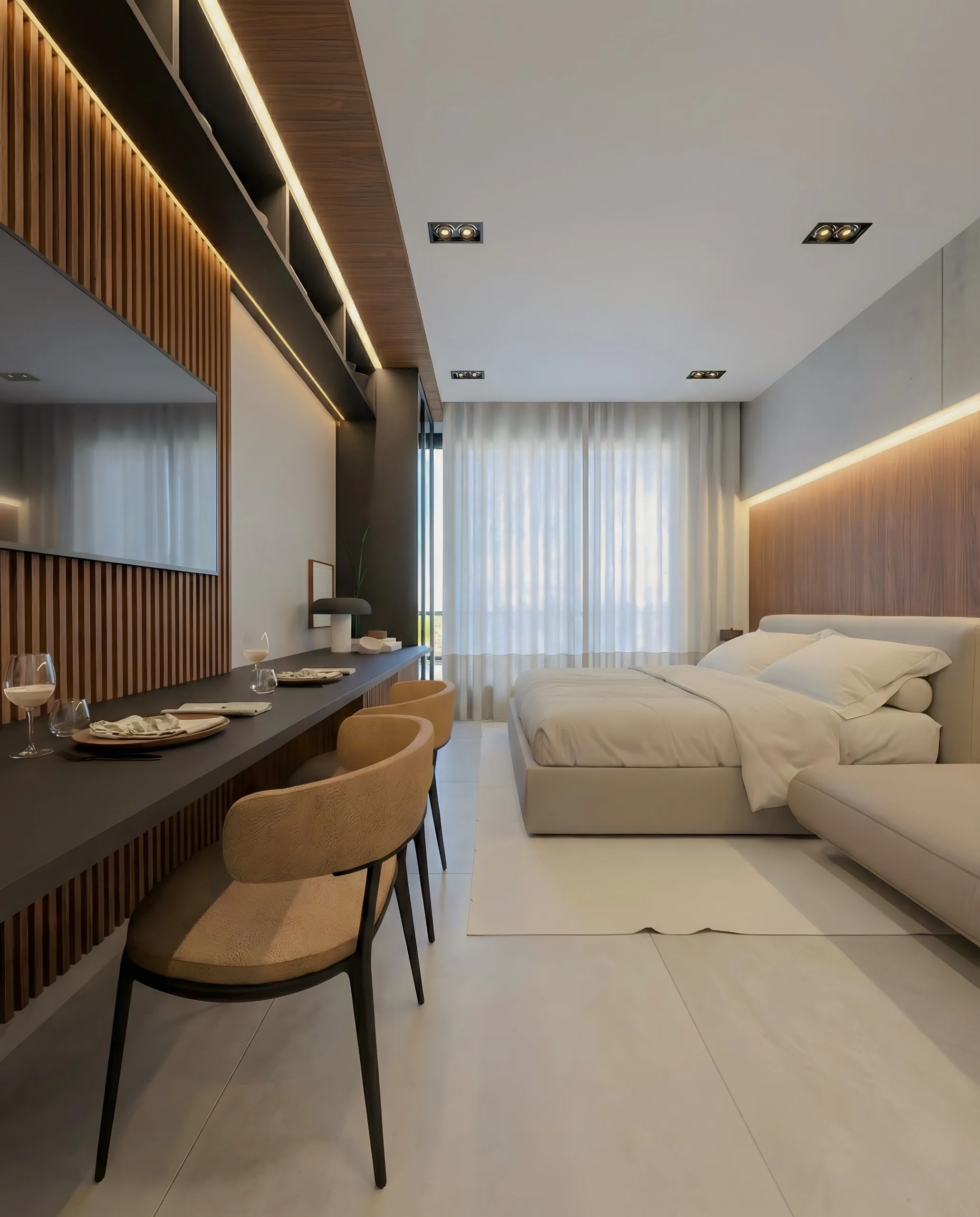 O modelo apart-hotel é pensado para operação com serviços e estrutura, facilitando a locação.